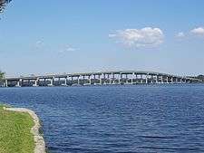 The bundled US 17, SR 20 and SR 100 cross the Memorial Bridge over the St. Johns River toward East Palatka.