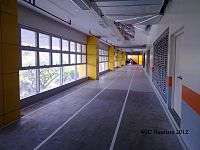The dance hall for the Salinggawi Dance Troupe as well as training halls for badminton, fencing, judo, table tennis, and taekwondo are located in the ground floor of the Quadricentennial Pavilion.[3] There is also a two-level fitness center on this floor and a gymnastics room. Five lecture rooms for IPEA (Institute of Physical Education and Athletics) is also located on this floor.[6] On the third level, the facility features a two-lane overall track encircling the building. The first floor training facilities and dance hall has a 2,985 square metres (32,130 sq ft) of rubberized flooring.[7]