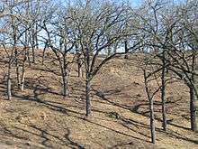 The bur oak is among the most fire-tolerant tree species. One of its most common habitats, especially in Midwestern United States, is the oak savanna, where fires often occurred in early spring or late fall, especially in hill country.