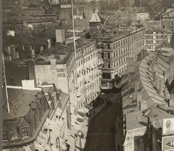 The Quincy House was a hotel in downtown Boston, Massachusetts. Located on the corner of Brattle Street and Brattle Square in the neighborhood of Scollay Square, it was in operation for most of the nineteenth and early twentieth centuries, before it was closed in 1929. It was the largest hotel in Boston in the late nineteenth century,[3] and was a popular destination for prominent guests to the city.[4] It also served as a major headquarters for labor unions in Boston.