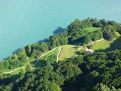 Rütli (German pronunciation: [ˈryːtli]) or Grütli (French: [ɡʁytli]; Italian: [ˈɡrutli]) is a mountain meadow on Lake Lucerne, in the Seelisberg municipality of the Swiss canton of Uri. Here the oath of the Rütlischwur is said to have occurred, the legendary turning-point in the pursuit of independence. Every August 1, on the Swiss National Day, the oath is re-enacted to commemorate the forming of the Old Swiss Confederacy.