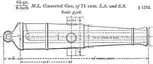 The RML 64 pounder 71 cwt guns (converted) were British rifled muzzle-loading guns converted from obsolete smoothbore 8-inch 65 cwt shell guns.[note 1]