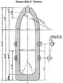 - ↑ cwt = hundredweight =112 pounds (51 kg). Britain typically used the weight of the gun barrel rounded to nearest cwt to differentiate versions of guns with the same calibre. Hence there were versions weighing 46 hundredweight (2,337 kg) and 70 hundredweight (3,556 kg). Britain used Roman numerals to denote Marks (models) of ordnance. Mk I = Mark I, Mk II = Mark 2. Hence this article refers to the 2 models each of RML 8 inch 46 cwt and 70 cwt howitzers.