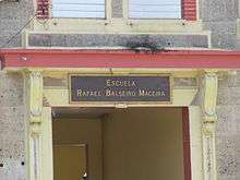The Rafael Balseiro Maceira School, is located in the town of Barceloneta, Puerto Rico.[1] The school is a reinforced concrete building with two levels, eclectic style, with L-shaped floors. It was completed on 1921. The eight rooms building was designed by Adrian C. Finlayson, one of the most prolific architects of the period, and built by local contractor engineer Antonio M. Navas (State Historic Preservation Office, 2012).[2] The property was listed on the National Register of Historic Places on August 28, 2012.[3]