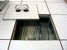 A raised floor (also raised flooring, access floor(ing), or raised access computer floor) provides an elevated structural floor above a solid substrate (often a concrete slab) to create a hidden void for the passage of mechanical and electrical services. Raised floors are widely used in modern office buildings, and in specialized areas such as command centers, IT data centers and computer rooms, where there is a requirement to route mechanical services and cables, wiring, and electrical supply. Such flooring can be installed at varying heights from 2 inches (51 mm) to heights above 4 feet (1,200 mm) to suit services that may be accommodated beneath. Additional structural support and lighting are often provided when a floor is raised enough for a person to crawl or even walk beneath.