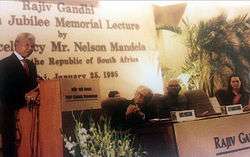 - ↑ "Nelson Mandela's lecture at Rajiv Gandhi Foundation".