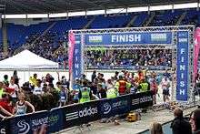 ![]() Finish of the half marathon in 2010 at the Madejski Stadium | |