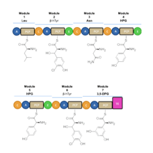 Figure 1: Modules and domains of vancomycin assembly