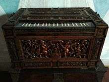 The regal was a small portable organ, furnished with beating reeds and having two bellows.[1] The instrument enjoyed its greatest popularity during the Renaissance. The name was also sometimes given to the reed stops of a pipe organ, and more especially the vox humana stop.