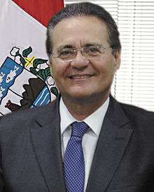 José Renan Vasconcelos Calheiros (Portuguese pronunciation: [ʁeˈnɐ̃ kaˈʎejɾus]; born in Murici, Alagoas, on September 16, 1955) is a Brazilian politician and current President of the Senate of Brazil, for the fourth time. He has represented the state of Alagoas in the senate for the Brazilian Democratic Movement Party since 1 February 1995.