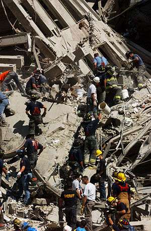 1. 1 2 3 Fritsch, Jane (September 12, 2001). "A Day of Terror - The Response: Rescue Workers Rush In, and Many Do Not Return". New York Times.