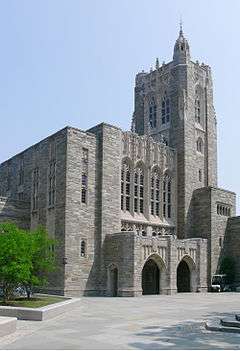 The first building on campus was Nassau Hall, completed in 1756 and situated on the northern edge of campus facing Nassau Street.[24] The campus expanded steadily around Nassau Hall during the early and middle 19th century.[33][34] The McCosh presidency (1868–88) saw the construction of a number of buildings in the High Victorian Gothic and Romanesque Revival styles; many of them are now gone, leaving the remaining few to appear out of place.[35] At the end of the 19th century Princeton adopted the Collegiate Gothic style for which it is known today.[36] Implemented initially by William Appleton Potter[36] and later enforced by the University's supervising architect, Ralph Adams Cram,[37] the Collegiate Gothic style remained the standard for all new building on the Princeton campus through 1960.[38][39] A flurry of construction in the 1960s produced a number of new buildings on the south side of the main campus, many of which have been poorly received.[40] Several prominent architects have contributed some more recent additions, including Frank Gehry (Lewis Library),[41] I. M. Pei (Spelman Halls),[42] Demetri Porphyrios (Whitman College, a Collegiate Gothic project),[43] Robert Venturi (Frist Campus Center, among several others),[44] and Rafael Viñoly (Carl Icahn Laboratory).[45]