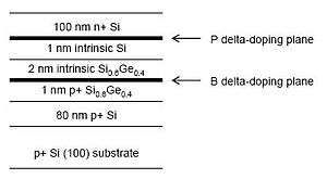 23. Duschl, R; Eberl, K (2000). "Physics and applications of Si/SiGe/Si resonant interband tunneling diodes". Thin Solid Films. 380: 151. Bibcode:2000TSF...380..151D. doi:10.1016/S0040-6090(00)01491-7.
