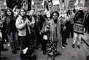 In 1993 the RCP helped launch the Campaign Against Militarism (CAM), to fight against western military intervention. CAM organised protests against the military interventions in Somalia, Bosnia and Iraq. On 10 September 1993 seventy Somalis and CAM supporters occupied the United States embassy after an alleged massacre of civilians in Mogadishu[20] - the only time it has happened. After they were evicted by armed marines, eleven were convicted under the as yet untested 'criminal trespass' laws, but charges were dropped after lawyer Mike Fisher sought to have the case tried in the United States, arguing that the offence, if any, was committed on American soil. CAM was the only left-wing group that joined British Serbs in their demonstrations over the military strikes on Yugoslavia in 1994.