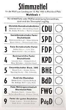 The Rhineland-Palatinate state election, 1955 was conducted on 15 May 1955 to elect members to the Landtag, the state legislature of Rhineland-Palatinate, West Germany.