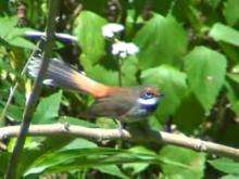These have been not been well characterised in the rufous fantail.[23] Nevertheless, it has been observed to create several different types of sounds such as chips, buzzes, and scolds.[24] Their "chip call" is often what first attracts an observer's attention.[6] This call is high pitched, with two chip noises given in quick succession. It is produced during food searching, territory defence and can be used as an alarm call when a predator is identified.[25] They sing after sunset from perches, one reason is to attract the opposite sex.[23]