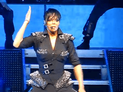 In July 2001, Jackson embarked on the All for You Tour, which was also broadcast on a concert special for HBO watched by twelve million viewers.[102] The tour traveled throughout the United States and Japan, although European and Asian dates were required to be canceled following the September 11 terrorist attacks. The Los Angeles Times complimented Jackson's showmanship.[103] Richard Harrington of the Washington Post said Jackson's performance surpassed her contemporaries,[104] but Bob Massy of Spin thought her dancers "threw crisper moves" and her supporting singers were mixed nearly as high, though declared "Janet cast herself as the real entertainment."[105] Jackson donated a portion of the tour's proceeds to the Boys & Girls Clubs of America.[106]