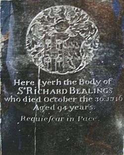 Sir Richard Bellings (sometimes spelt Bealings) (1622 – 30 October 1716) was an Irish courtier who served as the Knight secretary to Catherine of Braganza.[1] He was one of a number of Irish Catholics given office in England following the Restoration.[2]
