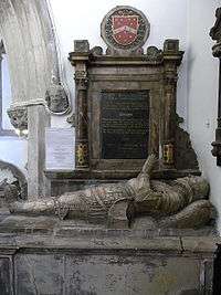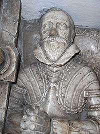 Sir Richard Berkeley (1531 – 1604) of Stoke Gifford, Gloucestershire was MP for Gloucestershire in 1604. He had previously served as Sheriff of Gloucestershire in 1564, and as Deputy Lieutenant of Gloucestershire. He was knighted by Queen Elizabeth I in 1568.[1] In 1595 he was appointed Lieutenant of the Tower of London. In 1599 he was appointed custodian of Robert Devereux, 2nd Earl of Essex (d. 1601), who was kept under house arrest at Essex House[2] in London. He died in 1604, whilst serving as MP, and was buried in The Gaunts Chapel, Bristol, where exists an effigy of him, which chapel had been founded in 1220 by Maurice de Gaunt (d. 1230), a member of the Berkeley family.