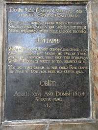 His soule w.th (with) God, loe here his coffin lyesObiit : Aprilis : xxvi : Ano. Domini : 1604 Aetatis suae 71