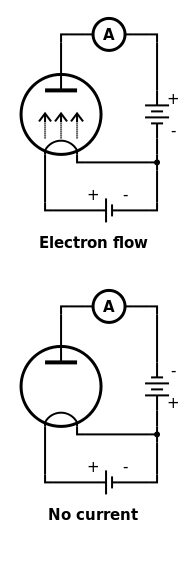 Edison built several experimental lamp bulbs with an extra wire, metal plate, or foil inside the bulb that was separate from the filament and thus could serve as an electrode. He connected a galvanometer, a device used to measure current (the flow of charge), to the output of the extra metal electrode. If the foil was put at a negative potential relative to the filament, there was no measurable current between the filament and the foil. When the foil was raised to a positive potential relative to the filament, there could be a significant current between the filament through the vacuum to the foil if the filament was heated sufficiently (by its own external power source).