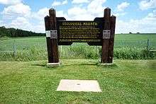 The Marathon County Park Commission has posted a geographical marker[4] that identifies the spot (45°N,-90°W) of the exact center of the northern half of the Western Hemisphere, meaning that it is a quarter of the way around the world from the Prime Meridian and halfway from the equator to the North Pole.