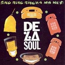 "Ring Ring Ring (Ha Ha Hey)" is the second single released by De La Soul from their second album De La Soul Is Dead, in 1991. The song is a party jam about overzealous fans who pursue the group with demo tapes in their efforts to obtain an endorsement from the group. It was inspired by one overzealous fan in particular, Breakestra frontman Miles Tackett, who was shopping demo tapes to the group (note "demo tapes by the miles" in the song's subtitle).