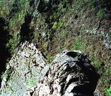The Roßtrappe is a 403-metre-high (1,322 ft) granite crag in the Harz mountains of central Germany.