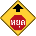 Thai warning signs are diamond-shaped and are yellow and black in colour.