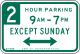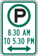 These types of signs allow for parking for either an unlimited or varied amount of time. These types are often used in conjunction with parking meters and parking permits. These signs are specified by the MUTCD to be green on white. Local variations do occur with additional information and slightly different designs.