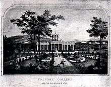 Roanoke was one of the few Southern colleges that remained open throughout the American Civil War.[16][17] The student body was organized into a corps of cadets and fought with Confederate forces near Salem in December 1863.[18] The students were outmatched and quickly forced to surrender, but the Union commander allowed them to return to their studies in exchange for a promise to put down their arms.[18] The college company was formally mustered into the Confederate Army, Virginia Reserves, on September 1, 1864, but the students did not see combat before the war ended.[17] A monument honoring Salem's Confederate soldiers, dedicated in 1909 by the local chapter of the United Daughters of the Confederacy, is on the grounds of the former Roanoke County courthouse, which is now a college academic building.[19]