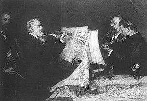 He had a significant association with Johannes Brahms. The Cello Sonata No. 2 in F minor, Op. 99, was both dedicated to and premiered by him, with the composer at the piano (14 November 1886). He also popularised the Sonata No. 1 in E minor, Op. 38.[1][8] In November 1891 he participated in the first private performance, in Meiningen, of the Clarinet Trio in A minor, Op. 114, with Richard Mühlfeld on clarinet and Brahms on piano. The following month they had a triumph with the public premiere in Berlin.[1] In March 1892 he introduced the work to London, with Mühlfeld and Fanny Davies. He also premiered the Double Concerto in A minor, along with Joseph Joachim, on 18 October 1887. It was dedicated to both performers, and the critic Eduard Hanslick wrote that Hausmann was "in no way inferior to Joachim".[8]