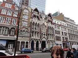 Roumieu's son, Reginald St Aubyn Roumieu (1854–1921) had an architectural practice with Alfred Aitchison at his father's premises of 10 Lancaster Place, near the Strand.[25] Roumieu and Aitchison completed R.L. Roumieu's designs for Charing Cross Road,[26] (a warehouse for Crosse and Blackwell), following his demise in 1877.