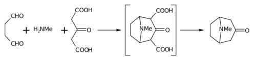 - ↑ Robinson, R. (1917). "LXIII. A Synthesis of Tropinone". Journal of the Chemical Society, Transactions. 111: 762–768. doi:10.1039/CT9171100762.