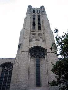 Rockefeller Chapel is a Gothic Revival chapel on the campus of the University of Chicago in Chicago, Illinois. A monumental example of Collegiate Gothic architecture, it was meant by patron John D. Rockefeller to be the "central and dominant feature" of the campus; at 200.7 feet[1] it is by covenant the tallest building on campus.