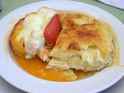 Rocoto relleno is the Peruvian variety of Stuffed Peppers, a dish popular in the city of Arequipa, a city in the Andes mountains located in the southern parts of Peru which is famous for its take on dishes derived originally from Spain. Since the sweet peppers used in Spain were not available in Peru, rocoto peppers were substituted, which were cooked in water and vinegar to remove as much spiciness as possible. Hard-boiled eggs are placed inside the rocotos and is then topped with melted cheese, baked and served whole. Rocotos are capsicum pubescens which are at least ten times spicier than jalapeño when raw. This is considered one of the most famous dishes of Peru and it is also served as one of the top Peruvian cuisines all over the world.[1][2]