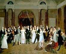 This painting, which is on display in the Bristol Museum and Art Gallery, has become one of Rolinda's most recognizable images for fans of Jane Austen and the British Regency. The image has been used for numerous books, most notably A Portrait of Jane Austen, by David Cecil, Jane Austen's World, by Maggie Lane, and High Society, by Venetia Murray. One reason for its popular use might be that only a few Georgian paintings exist today that depict assemblies in progress, with people dancing or moving around.[9] Rolinda's painting shows a group in the cloakroom preparing for the evening. The Clifton Assembly rooms still survive to this day.