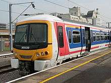 Network SouthEast inherited a large fleet of electric multiple units (EMUs), smaller numbers of diesel (DMU) and diesel electric (DEMU) multiple units, and some diesel locomotives and coaching stock.[1] Much of the fleet was introduced after the 1955 Modernisation Plan; stock was old (some dated from before World War II) and in variable condition, giving a "drab" and "uninspiring" appearance, and was difficult to convert to driver-only operation.[2] Accordingly, the sector invested in many new vehicles during its eight-year history. After initial problems, the Networker range of units proved very successful and is still used across southeast England on the privatised rail network. The same applies to the innovative Class 319 dual-voltage units, built for NSE's new Thameslink service which operated on two incompatible types of electrified line.[3]