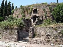Funerary altars of more wealthy Roman citizens were often found on the interior of more elaborate tombs.[21] Altars erected by the middle class were also set up in or outside of monumental tombs, but also in funerary precincts that lined the roads leading out of the city of Rome.[29] The altars that were part of tomb complexes were set up on family plots or on building plots bought by spectators, who then sold them to individual owners.[30] Tombs and altars had a close connection in the mind of a Roman, evidenced by the Latin inscriptions where tombs are described as if they were altars.[31]