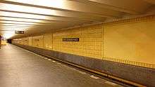 Rosa-Luxemburg-Platz is a Berlin U-Bahn station located on the U2. It was formerly called Schönhauser Tor and is located at the foot of Schönhauser Allee, at the corner of Torstraße. Built in 1913 and designed by Alfred Grenander, the station bears its original name of "Schönhauser Tor". In 1934 the name was changed to "Horst-Wessel-Platz". After the war in 1945 the name was reverted to its original. In 1950 the name changed again to Luxemburgplatz, then in 1978 to Rosa-Luxemburg-Platz to avoid confusion with the country. The color of the station is yellow.[1]