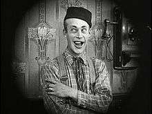 Arbuckle had a "wonderful" singing voice and was extremely agile. At the age of eight, with his mother's encouragement, he first performed on stage with Frank Bacon's company during their stopover in Santa Ana.[5] Arbuckle enjoyed performing and continued on until his mother's death in 1899 when he was 12. His father, who had always treated him harshly,[6] now refused to support him and Arbuckle got work doing odd jobs in a hotel. Arbuckle was in the habit of singing while he worked and was overheard by a customer who was a professional singer. The customer invited him to perform in an amateur talent show. The show consisted of the audience judging acts by clapping or jeering with bad acts pulled off the stage by a shepherd's crook. Arbuckle sang, danced, and did some clowning around, but did not impress the audience. He saw the crook emerge from the wings and to avoid it somersaulted into the orchestra pit in obvious panic. The audience went wild, and he not only won the competition but began a career in vaudeville.[4]