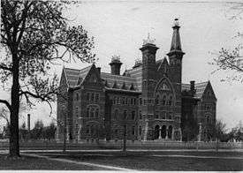 Photograph (circa 1881) of the original main campus building at 13th and Locust.
