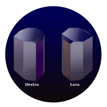 The rotation of the orientation of linearly polarized light was first observed in 1811 in quartz by French physicist François Jean Dominique Arago.[1] In 1820, the English astronomer Sir John F.W. Herschel discovered that different individual quartz crystals, whose crystalline structures are mirror images of each other (see illustration), rotate linear polarization by equal amounts but in opposite directions.[2] Jean Baptiste Biot also observed the rotation of the axis of polarization in certain liquids[3] and vapors of organic substances such as turpentine.[4] Simple polarimeters have been used since this time to measure the concentrations of simple sugars, such as glucose, in solution. In fact one name for D-glucose (the biological isomer), is dextrose, referring to the fact that it causes linearly polarized light to rotate to the right or dexter side. In a similar manner, levulose, more commonly known as fructose, causes the plane of polarization to rotate to the left. Fructose is even more strongly levorotatory than glucose is dextrorotatory. Invert sugar syrup, commercially formed by the hydrolysis of sucrose syrup to a mixture of the component simple sugars, fructose, and glucose, gets its name from the fact that the conversion causes the direction of rotation to "invert" from right to left.