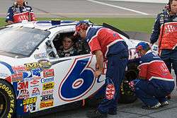 The 06 attempted ten races led by crew chief Frank Stoddard during the 2006 season to prepare Roush Racing's development drivers for future Cup careers, and eventually replace Mark Martin in the No. 6 car.[18][19] Todd Kluever was originally the sole driver, but was replaced with David Ragan at the end of the season.[18] The team debuted with Kluever behind the wheel at Chicagoland Speedway on July 9 with sponsorship from 3M.[20] Kluever also drove the car at Michigan International Speedway, Kansas Speedway, Lowe's Motor Speedway, and attempted to start races at California Speedway, Phoenix International Raceway, and Homestead-Miami Speedway.[21] David Ragan, with sponsorship from Sharp Aquos, ran the No. 06 at Dover International Speedway and Martinsville Speedway in the fall, and missed the second 2006 race at Texas Motor Speedway.[18][22][23]