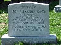 The Admiral died on January 20, 1971 and was buried with full military honors in Section 5 of Arlington National Cemetery. His wife, Harriet Howard Gano (February 8, 1902-January 31, 1991) is buried with him.