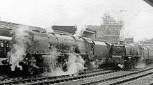 In 1960 the down Royal Scot had its departure time from Euston changed to 09:05. The down train was speeded up by 40 minutes and the up train by 15 minutes, for a new journey time in both directions of 7 hours 15 minutes, identical with the other two daytime named trains of the era between London and Glasgow, The Caledonian and the Mid-Day Scot. All three trains at this period were restricted to eight coaches to save weight, and the number of passengers carried was limited to the seating capacity of the train, standing passengers not being permitted. All three ran non-stop between London and Carlisle.[1]