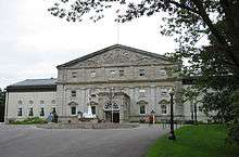 A number of buildings across Canada are reserved by the Crown for the use of the monarch and her viceroys. Each is called Government House, but may be customarily known by some specific name. The sovereign's and governor general's official residences are Rideau Hall in Ottawa and the Citadelle in Quebec City.[n 26] Each of these royal seats holds pieces from the Crown Collection.[291] Further, though neither was ever used for their intended purpose, Hatley Castle in British Columbia was purchased in 1940 by King George VI in Right of Canada to use as his home during the course of World War II,[292] and the Emergency Government Headquarters, built in 1959 at CFS Carp and decommissioned in 1994, included a residential apartment for the sovereign or governor general in the case of a nuclear attack on Ottawa.[293][294]