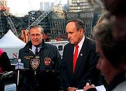 Giuliani has been widely criticized for his decision to locate the Office of Emergency Management headquarters on the 23rd floor inside the 7 World Trade Center building. Those opposing the decision perceived the office as a target for a terrorist attack in light of the previous terrorist attack against the World Trade Center in 1993.[104][105][106] The office was unable to coordinate efforts between police and firefighters properly while evacuating its headquarters.[107] Large tanks of diesel fuel were placed in 7 World Trade to power the command center. In May 1997, Giuliani put responsibility for selecting the location on Jerome M. Hauer, who had served under Giuliani from 1996 to 2000 before being appointed by him as New York City's first Director of Emergency Management. Hauer has taken exception to that account in interviews and provided Fox News and New York Magazine with a memo demonstrating that he recommended a location in Brooklyn but was overruled by Giuliani. Television journalist Chris Wallace interviewed Giuliani on May 13, 2007, about his 1997 decision to locate the command center at the World Trade Center. Giuliani laughed during Wallace's questions and said that Hauer recommended the World Trade Center site and claimed that Hauer said that the WTC site was the best location. Wallace presented Giuliani a photocopy of Hauer's directive letter. The letter urged Giuliani to locate the command center in Brooklyn, instead of lower Manhattan.[108][109][110][111][112] The February 1996 memo read, "The [Brooklyn] building is secure and not as visible a target as buildings in Lower Manhattan."[113]