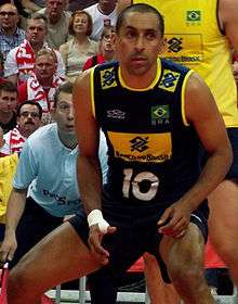 In 2004 he became an Olympic Champion for the first time. However, on the next two Olympics, the Brazilian national volleyball team won silver medals only.[4] Serginho semi-retired from the national team after the 2012 Olympics, and returned only for the 2015 World League.[5] After that he declined to compete at the 2016 Rio Olympics, but was persuaded by Bernardinho to return. Bernardinho claimed that, while Serginho no longer had the agility that made him famous, he had experience and maturity to lead the team during a tournament that would certainly be rife with pressure on the Brazilian team, since they were playing on their country and coming from two losses on previous Olympics. Serginho was essential to motivate his team against France. They were losing, and on a break Serginho told his colleagues that, while they all had at least one more chance at going to the Olympics, he didn't – those would be his last Olympic Games. Eventually, Brazil won the gold medal against Italy, and Serginho was acclaimed by the cheering fans, who called him king.[6] After the match against Italy, Serginho was named the tournament's most valued player.[7] He announced after Rio finals against Italy he will play professionally for two more years.