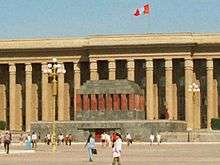 Sükhbaatar's Mausoleum was a mausoleum for Damdin Sükhbaatar, leader of Mongolia's 1921 revolution, and Khorloogiin Choibalsan, head of Mongolia's government from the late 1930s to his death in 1952, in Mongolia's capital Ulaanbaatar, on the northern side of Sükhbaatar Square in front of the Saaral Ordon. The building was erected after Choibalsan's death, and removed in 2005 to make place for a hall dedicated to Genghis Khan. The mausoleum resembled the shape of Lenin's Mausoleum but differed in color.